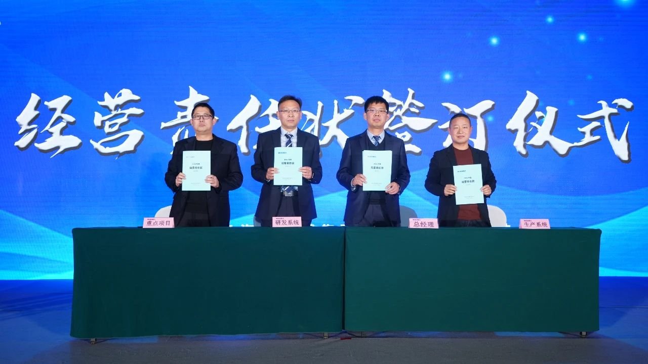 現(xiàn)場,總經(jīng)理與董事長,國內(nèi)外市場負(fù)責(zé)人、各重點(diǎn)項(xiàng)目負(fù)責(zé)人與總經(jīng)理,分別簽署2024年責(zé)任狀。副總經(jīng)理王世軍代表管理團(tuán)隊做出表態(tài),堅決高質(zhì)高量完成生產(chǎn)經(jīng)營全年任務(wù)指標(biāo)。
