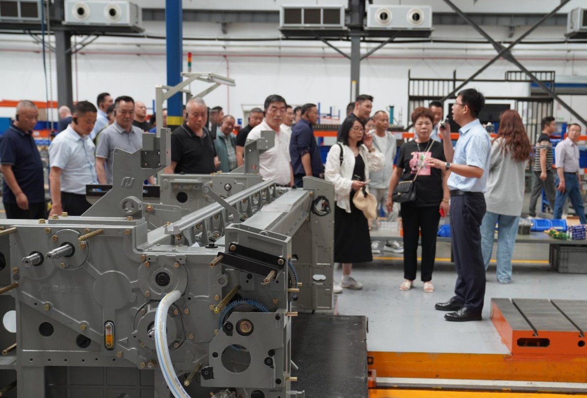 為增強(qiáng)織造行業(yè)上下游交流互動(dòng),促進(jìn)企業(yè)合作發(fā)展,6月13日,由盛澤織造商會(huì)榮譽(yù)會(huì)長(zhǎng)吳留生先生、會(huì)長(zhǎng)史連明先生帶隊(duì),商會(huì)監(jiān)事長(zhǎng)、顧問、書記、秘書長(zhǎng)、常務(wù)副會(huì)長(zhǎng)、副會(huì)長(zhǎng)、監(jiān)事及理事會(huì)員一行50余人蒞臨青島海佳機(jī)械集團(tuán)參觀指導(dǎo)。集團(tuán)董事長(zhǎng)王安儉、總經(jīng)理劉井然、副總經(jīng)理王柏涵等領(lǐng)導(dǎo)與商會(huì)來賓齊聚一堂,共同參觀了海佳智能制造工廠,并舉行企業(yè)交流晚宴,共敘友誼,齊繪藍(lán)圖。
