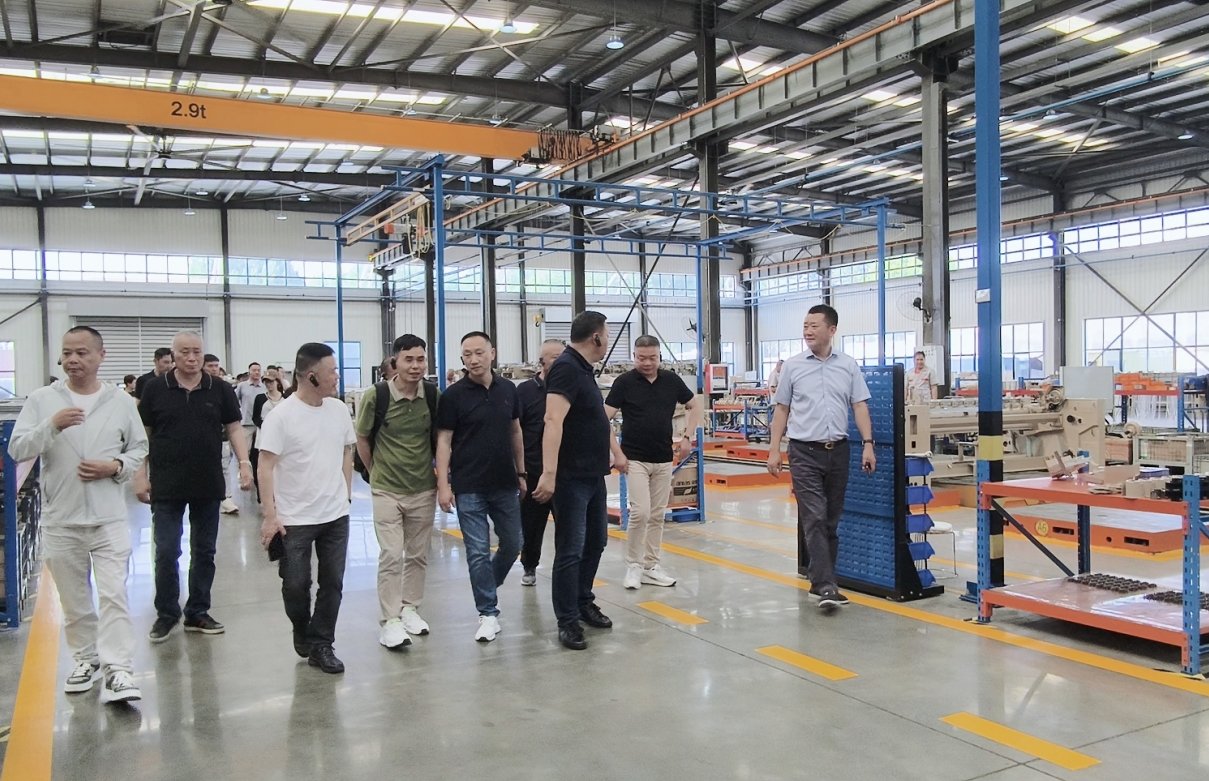 為增強(qiáng)織造行業(yè)上下游交流互動(dòng),促進(jìn)企業(yè)合作發(fā)展,6月13日,由盛澤織造商會(huì)榮譽(yù)會(huì)長(zhǎng)吳留生先生、會(huì)長(zhǎng)史連明先生帶隊(duì),商會(huì)監(jiān)事長(zhǎng)、顧問、書記、秘書長(zhǎng)、常務(wù)副會(huì)長(zhǎng)、副會(huì)長(zhǎng)、監(jiān)事及理事會(huì)員一行50余人蒞臨青島海佳機(jī)械集團(tuán)參觀指導(dǎo)。集團(tuán)董事長(zhǎng)王安儉、總經(jīng)理劉井然、副總經(jīng)理王柏涵等領(lǐng)導(dǎo)與商會(huì)來賓齊聚一堂,共同參觀了海佳智能制造工廠,并舉行企業(yè)交流晚宴,共敘友誼,齊繪藍(lán)圖。